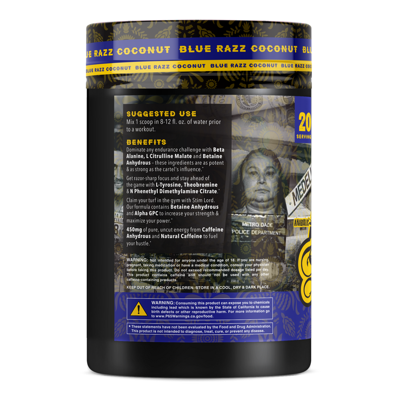Unleash your inner Escobar and dominate your workout with Stim Lord. Our potent pre-workout blend is stacked with muscle pump activators and loaded up with caffeine to dominate your workouts.